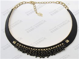 金属尖锥体黑色编织夸张时尚衣领颈链