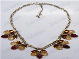 红铜色花型锌合金宝石镶嵌时尚百搭复古项链